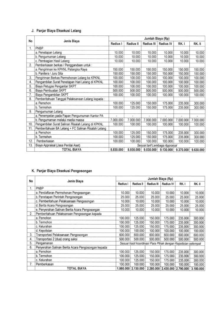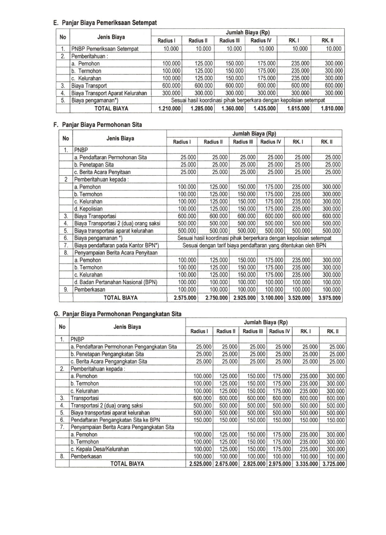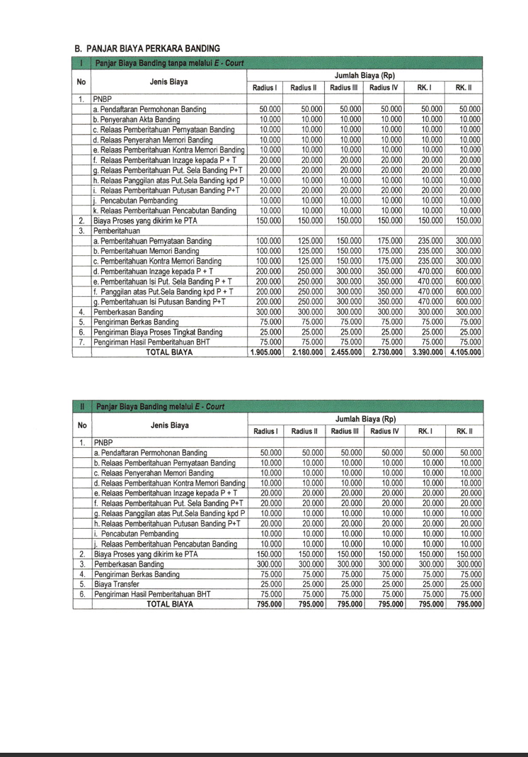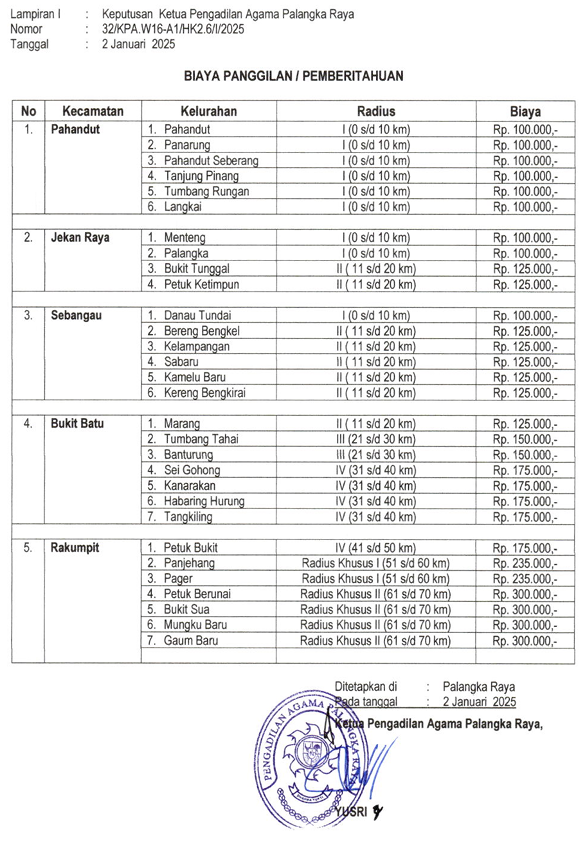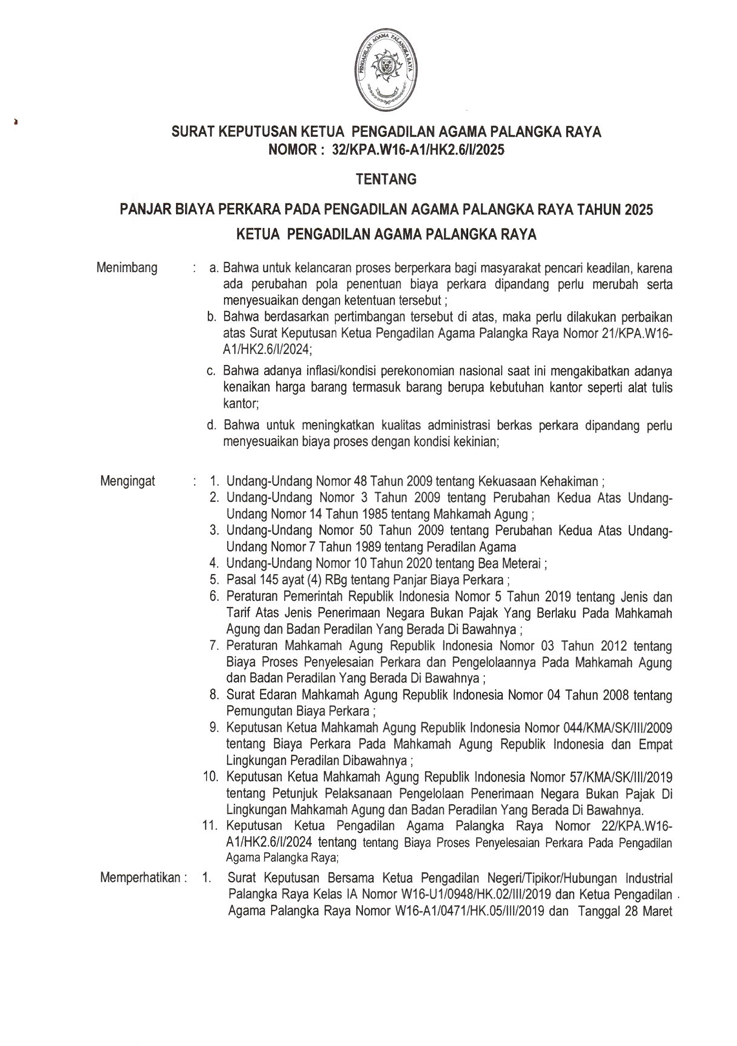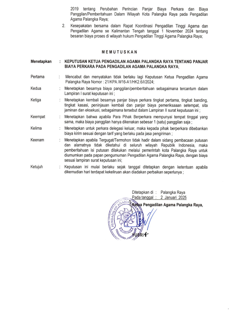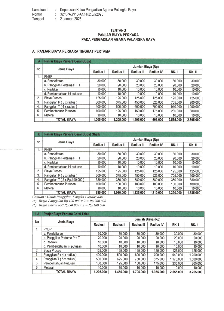 PERUBAHAN PERINCIAN BIAYA PANJAR PERKARA DAN BIAYA PANGGILAN/