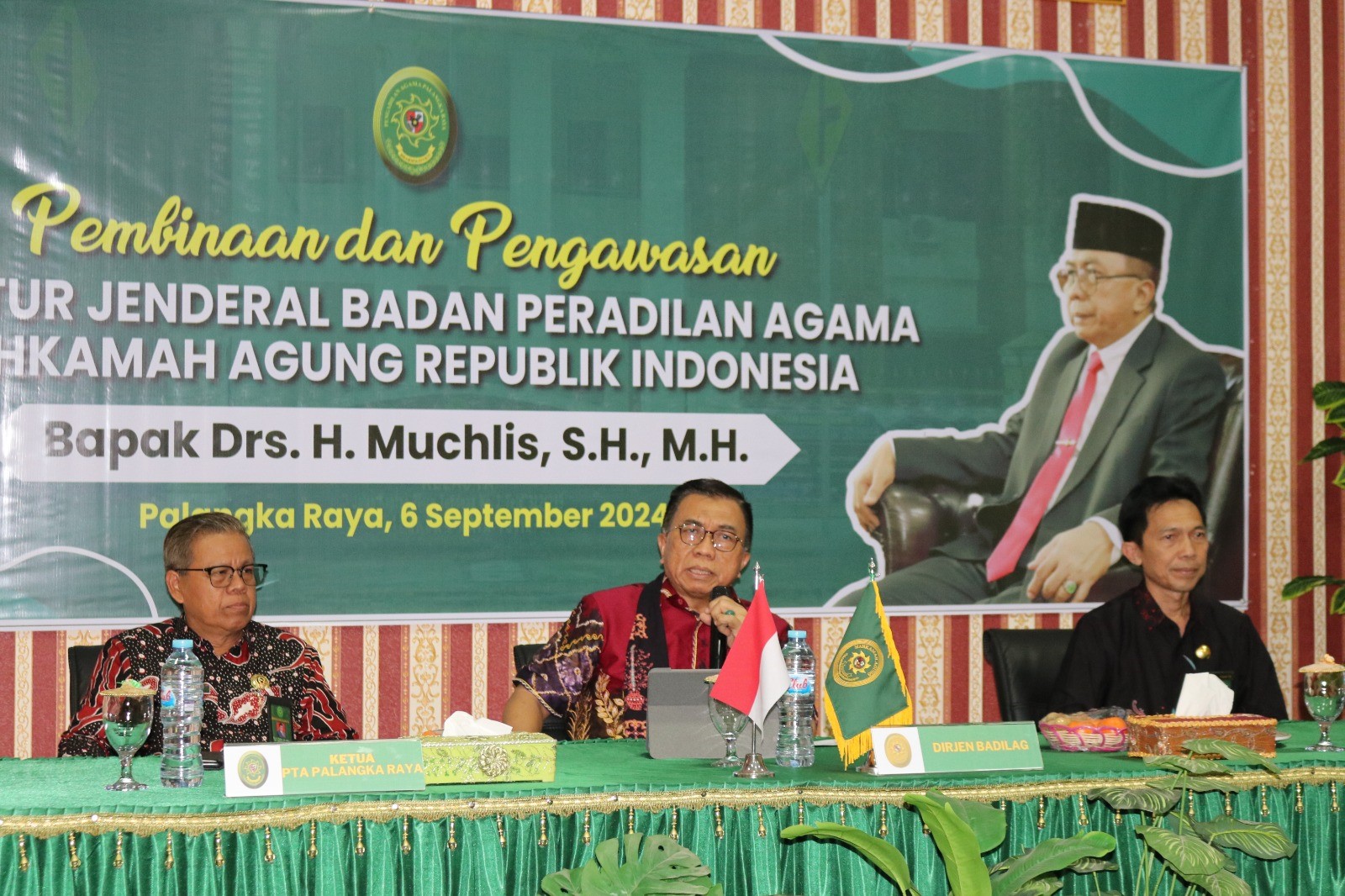 Sementara itu Direktur Jenderal Badan Peradilan Agama Mahkamah Agung RI Drs. H. Muchlis, S.H., M.H. dalam Pembinaan dan Pengawasan menyampaikan hal-hal sebagai berikut :