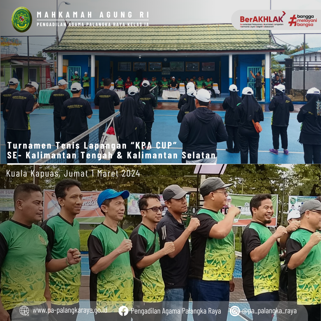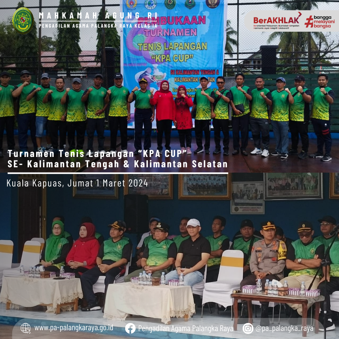 Acara tersebut juga dihadiri oleh seluruh Ketua Pengadilan Agama se wilayah PTA Palangka Raya. Sebagai wujud rasa syukur sebelum pertandingan tenis dimulai, dilaksanakan pemotongan nasi tumpeng oleh Ketua PA Kuala Kapuas Bapak Suharja, S.Ag.,M.H.